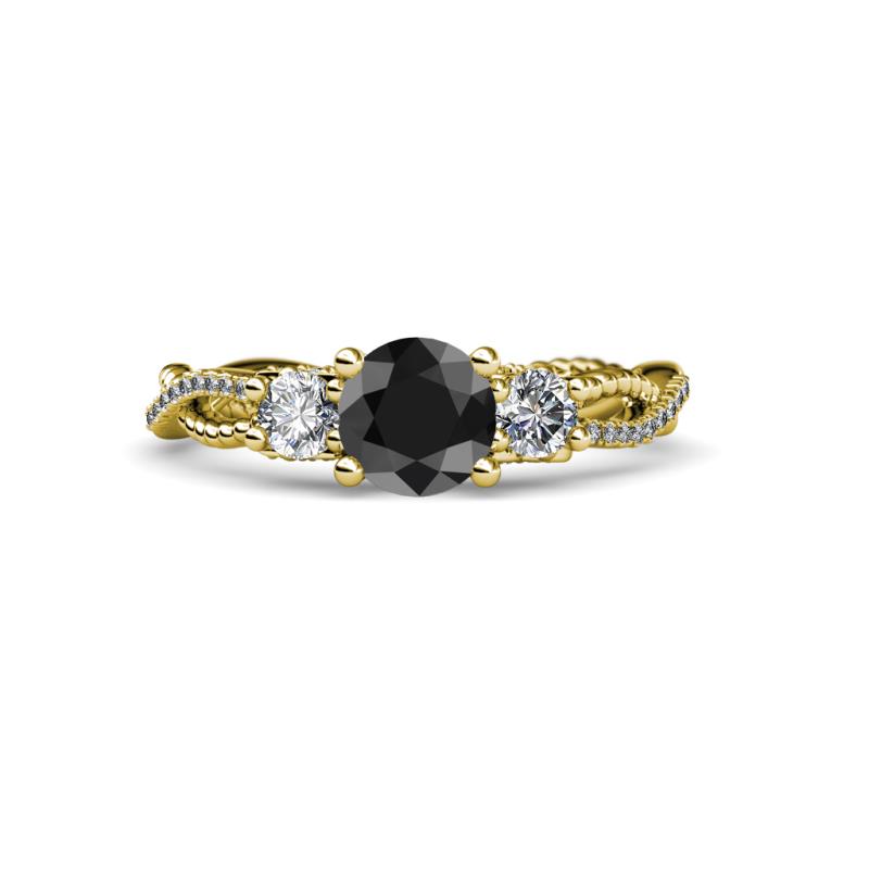Round Black and White Diamond 1 5/8 ctw Womens Three Stone Engagement Ring 18K Yellow Gold More Details ...