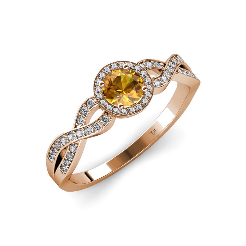 Citrine and Diamond Swirl Womens Halo Engagement Ring 0.93 ctw 14K Rose Gold More Details ...