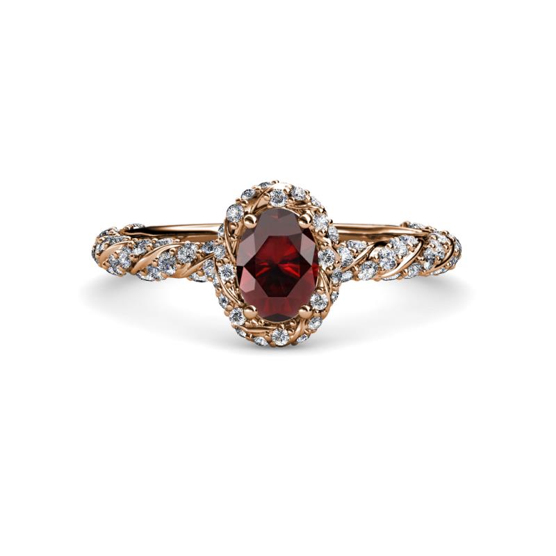 Oval Cut (7x5 mm) Red Garnet and Diamond Womens Halo Engagement Ring 1.65 ctw 14K Rose Gold More Details ...