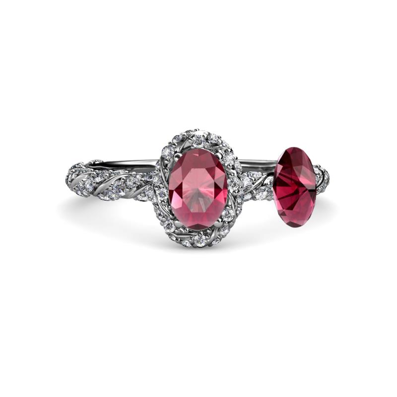 Oval Cut (7x5 mm) Garnet and Diamond Womens Halo Engagement Ring 1.65 ctw 18K White Gold More Details ...