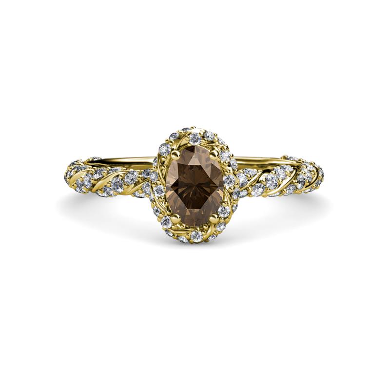 Oval Cut (7x5 mm) Smoky Quartz and Diamond Womens Halo Engagement Ring 1.50 ctw 18K Yellow Gold More Details ...