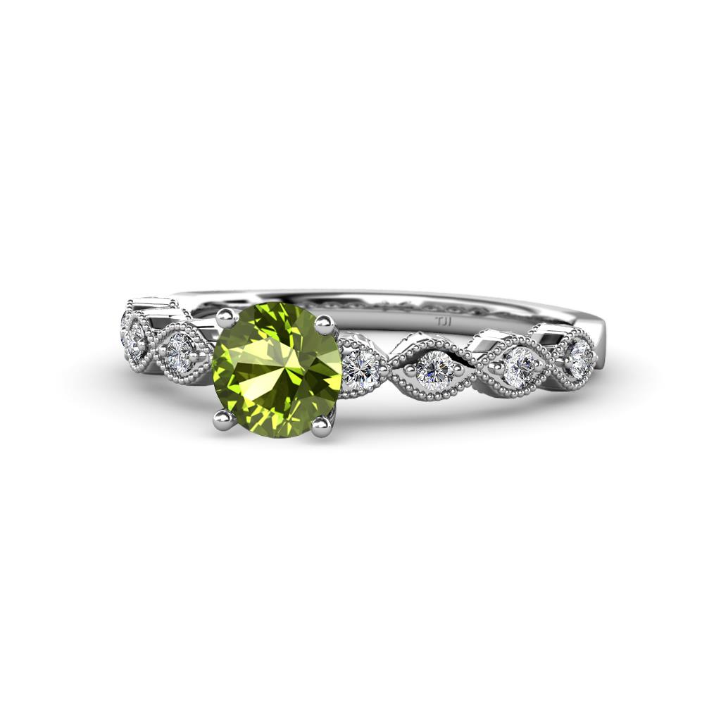 Peridot and Diamond Twisted Womens Engagement Ring with Milgrain Work 1.18 ctw Platinum More Details ...
