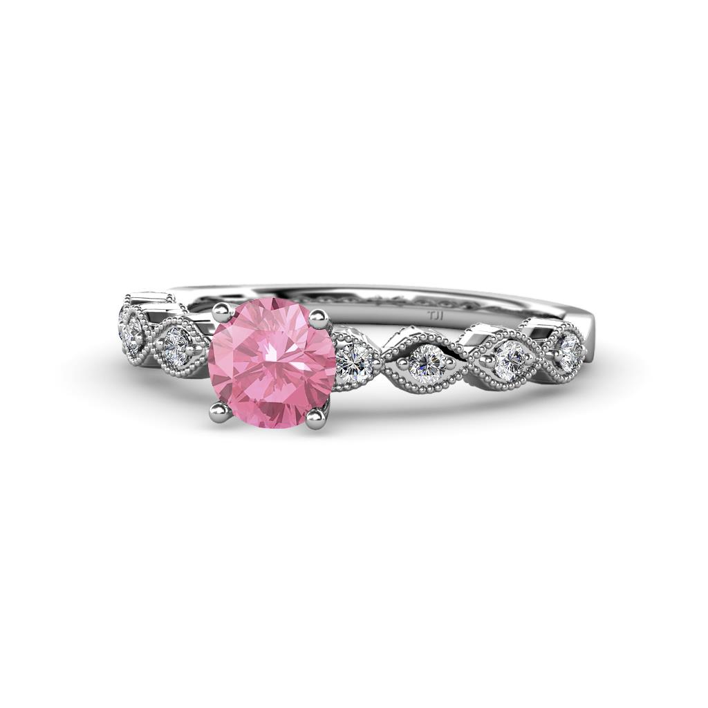 Pink Tourmaline and Diamond Twisted Womens Engagement Ring with Milgrain Work 0.95 ctw Platinum More Details ...