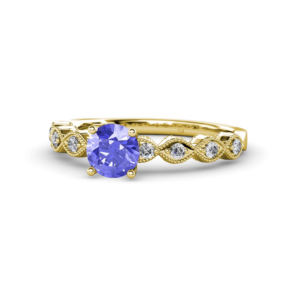 Tanzanite and Diamond Twisted Womens Engagement Ring with Milgrain Work 1.00 ctw 14K Yellow Gold More Details ...