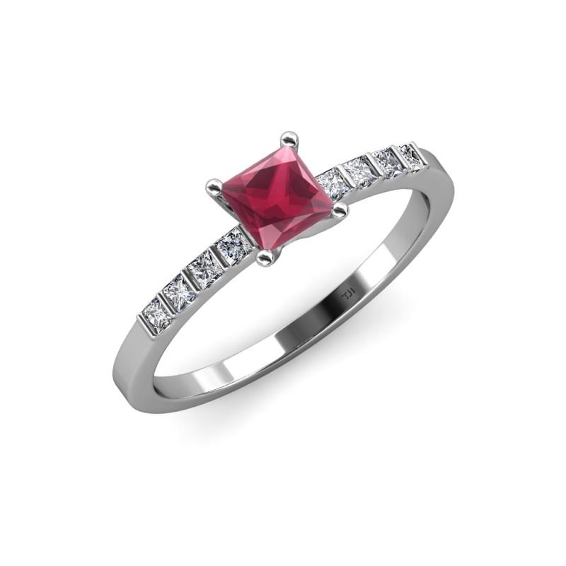 Princess Cut (5 mm) Rhodolite Garnet and Diamond Womens Engagement Ring 0.84 ctw 14K White Gold More Details ...