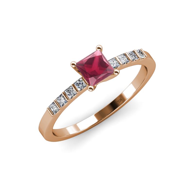 Princess Cut (5 mm) Rhodolite Garnet and Diamond Womens Engagement Ring 0.84 ctw 18K Rose Gold More Details ...