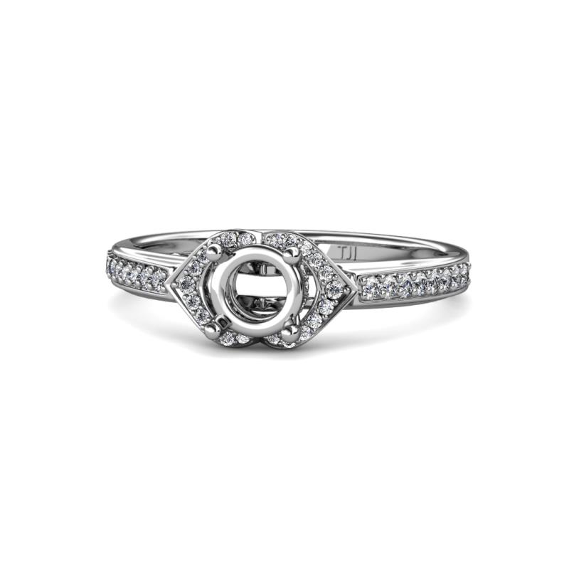 This Glorious Semi Mount Collar Engagement Ring has 4 Prong Head with flared shoulders and single row collar along with single row shank of Pave Set Diamonds is a perfect symbol of heavenly beauty and timeless elegance.