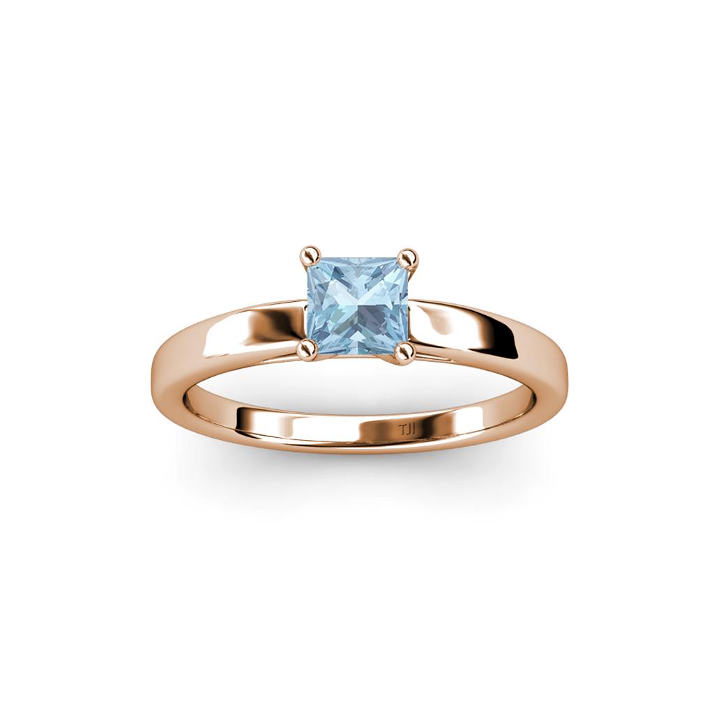 Princess Cut (5.5 mm) Aquamarine Womens Solitaire Engagement Ring 7/8 ct 14K Rose Gold More Details ...