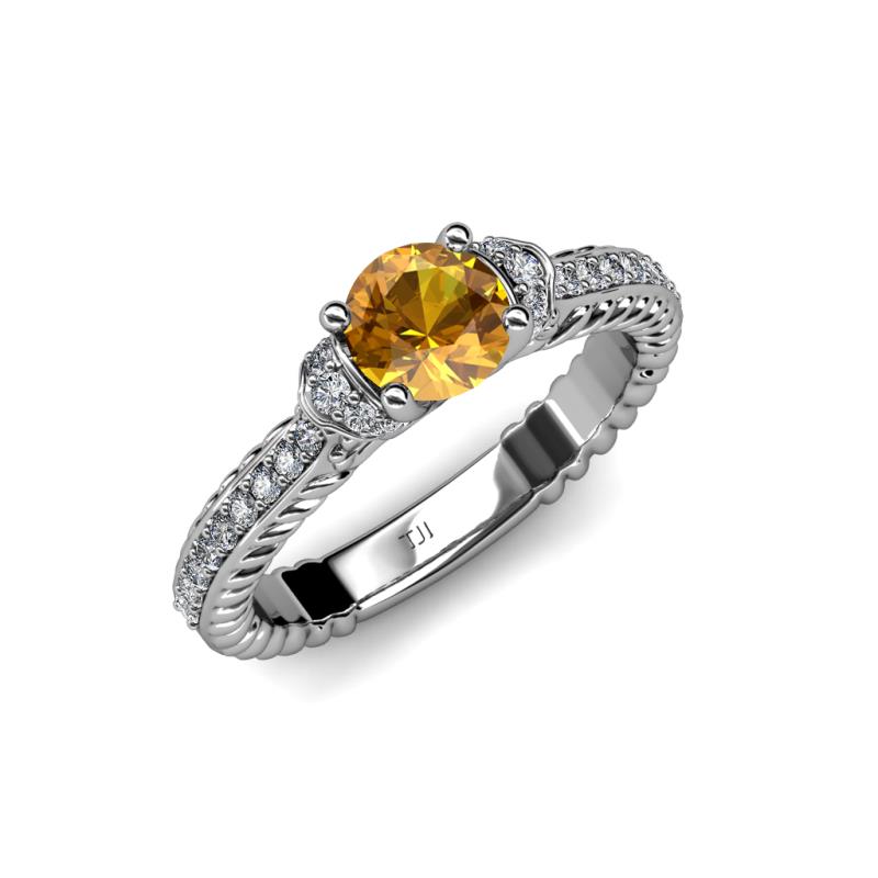 This Glamorous Engagement Ring features Center Citrine flanked by series of Diamonds further forming remarkable combination with bubble cable design making it extraordinary and vintage.