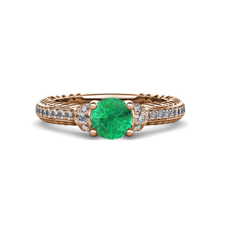 Emerald and Diamond Bubble Cable Womens Engagement Ring 1.10 ctw 14K Rose Gold More Details ...