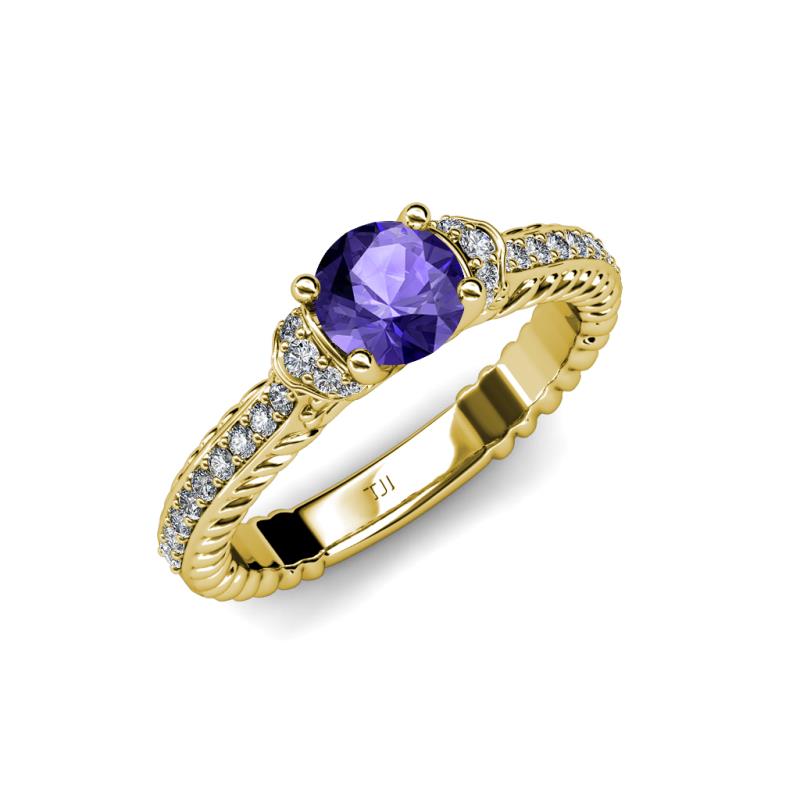 Iolite and Diamond Bubble Cable Womens Engagement Ring 1.30 ctw 14K Yellow Gold More Details ...