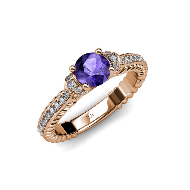• 1.30 cttw Iolite and Diamond Bubble Cable Engagement Ring.