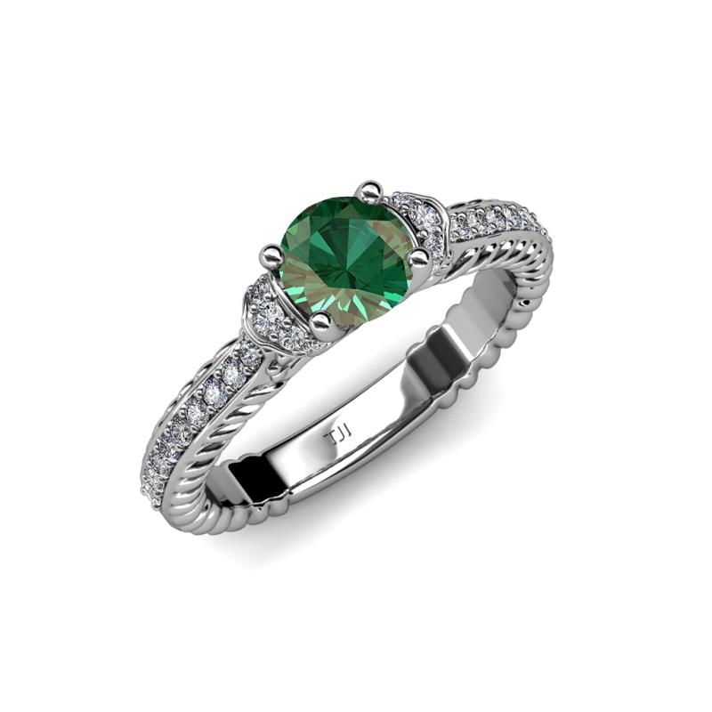 This Glamorous Engagement Ring features Center Lab Created Alexandrite flanked by series of Diamonds further forming remarkable combination with bubble cable design making it extraordinary and vintage.