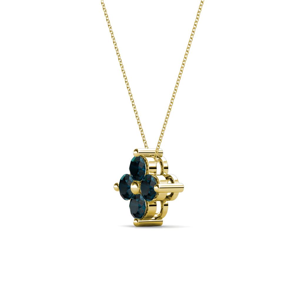A look of true grace and elegance,four Round London Blue Topaz are beautiful set using Shared Prong in a floral pattern giving this 0.32 ct tw Pendant a touch of Love Charm.