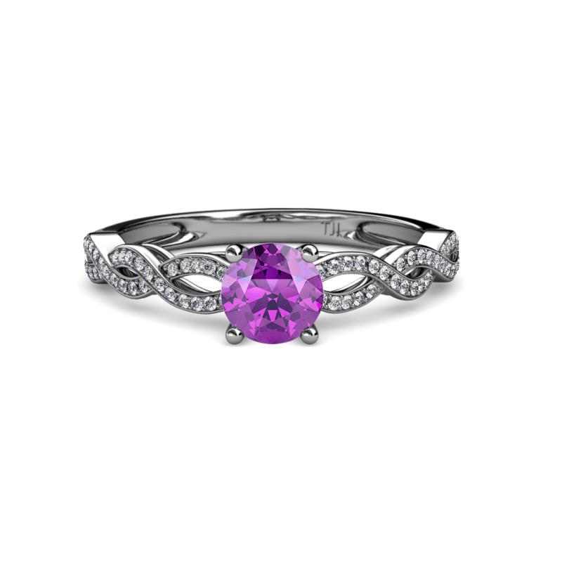 Honour the one You love by this Infinity Engagement Ring with 4 Prong Center Amethyst and open split crossover Shank framed by Pave Set smaller accent Diamonds will surely make one's Heart flutter.