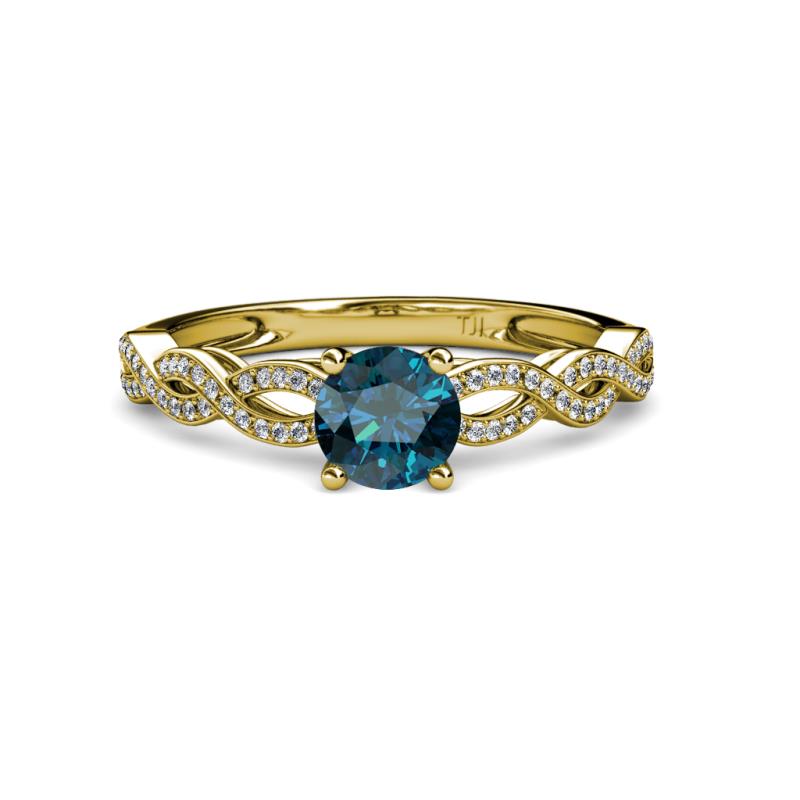 Honour the one You love by this Infinity Engagement Ring with 4 Prong Center Blue Diamond and open split crossover Shank framed by Pave Set smaller accent White Diamonds will surely make one's Heart flutter.