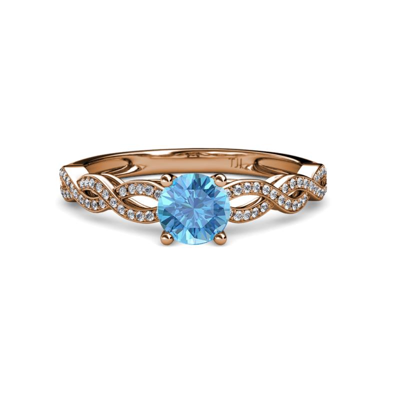 Honour the one You love by this Infinity Engagement Ring with 4 Prong Center Blue Topaz and open split crossover Shank framed by Pave Set smaller accent Diamonds will surely make one's Heart flutter.