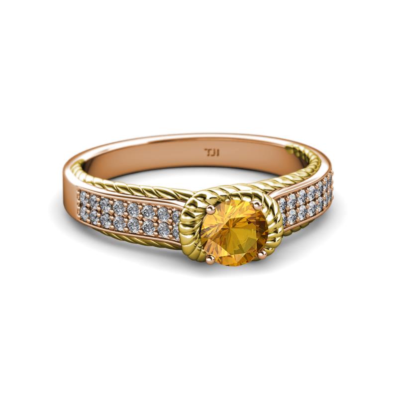 Citrine and Diamond Two Tone Womens Solitaire Plus Engagement Ring 1.22 ctw 18K Rose Gold More Details ...