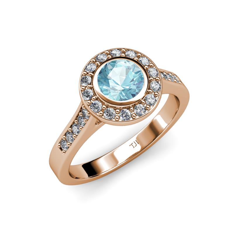 Aquamarine and Diamond Womens Halo Engagement Ring 1.23 ctw 14K Rose Gold More Details ...