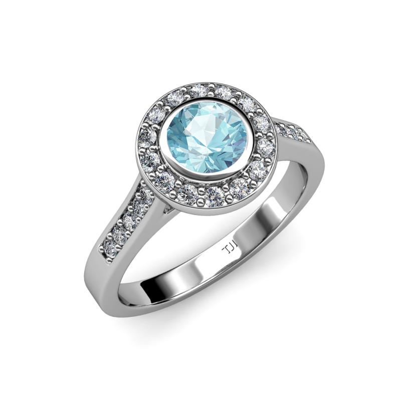 Mark the beginning to the Lifetime of your Love with this Gorgeous Halo Engagement Ring with Center Aquamarine wrapped by Diamond and make it a Romantic treasure for the years to come.