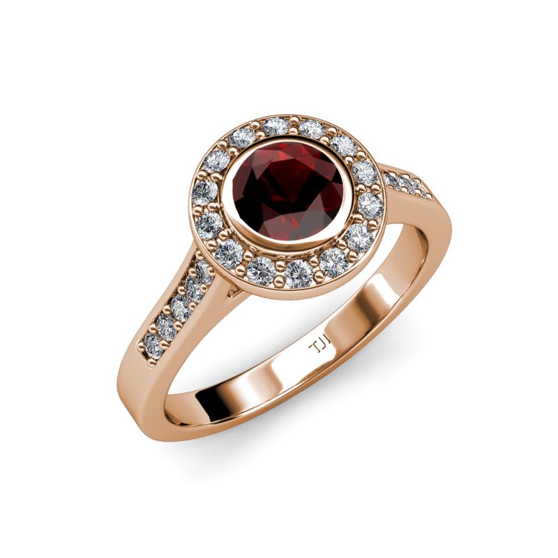 Red Garnet and Diamond Womens Halo Engagement Ring 1.41 ctw 18K Rose Gold More Details ...