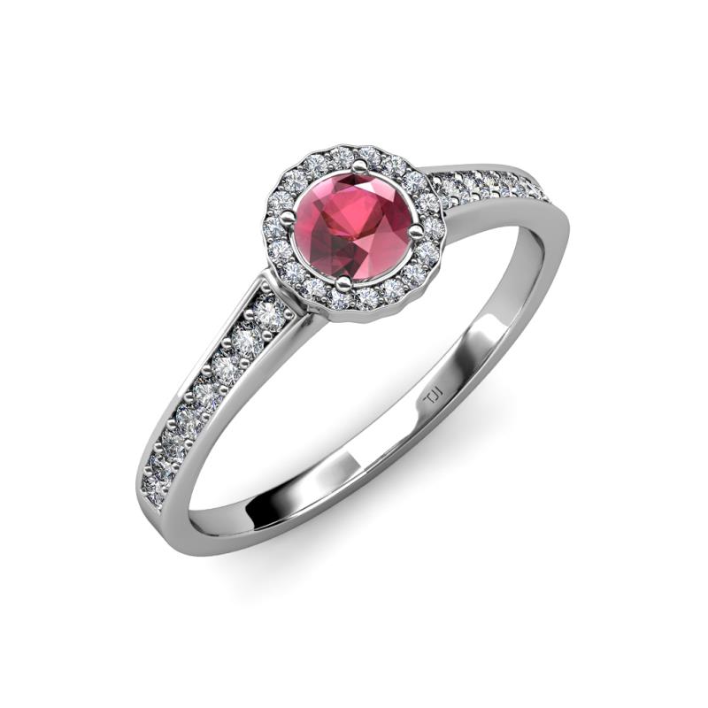 Rhodolite Garnet and Diamond Womens Halo Engagement Ring 0.99 ctw 18K White Gold More Details ...