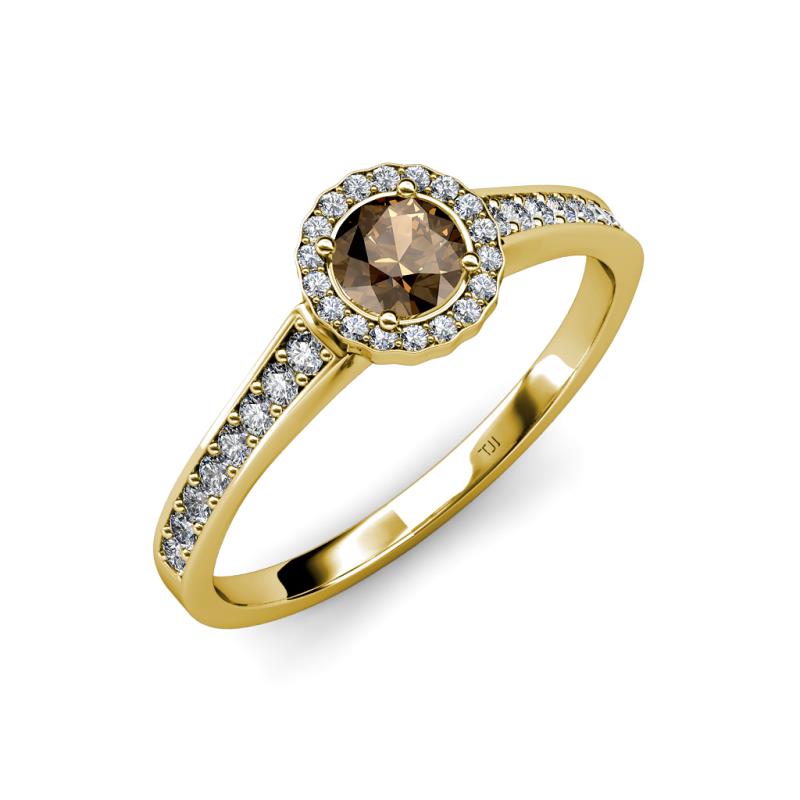 Smoky Quartz and Diamond Womens Halo Engagement Ring 0.94 ctw 14K Yellow Gold More Details ...