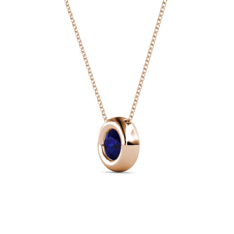 1/2 ct Round Blue Sapphire Donut Bezel Set Womens Solitaire Pendant Necklace 14K Rose Gold.Included 16 Inches 14K Rose Gold Chain More Details ...