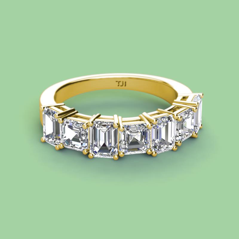 Emerald Cut (6x4 mm) Lab Grown Diamond and Asscher Cut Diamond 4.70 ctw* 7 Stone Shared Prong with Side Gallery Work Womens Wedding Band Stackable 18K Yellow Gold More Details ...