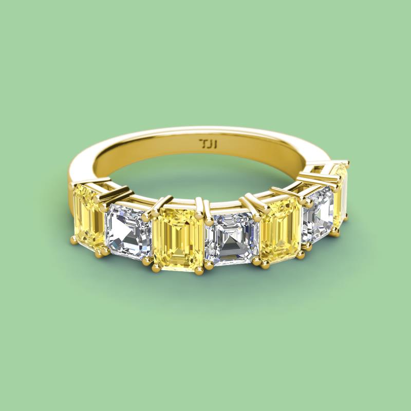 Emerald Cut (6x4 mm) Yellow Sapphire and Asscher Cut Diamond 4.30 ctw* 7 Stone Shared Prong with Side Gallery Work Womens Wedding Band Stackable 18K Yellow Gold More Details ...