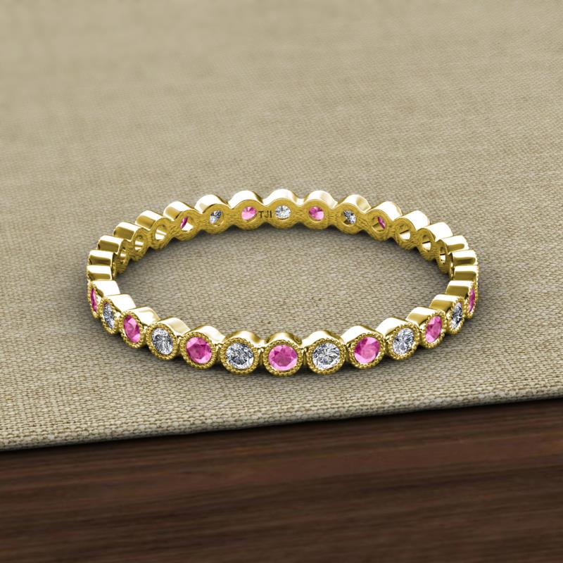 Pink Sapphire and Diamond Bezel Set Milgrain Womens Eternity Ring Stackable 0.68 ctw* 18K Yellow Gold More Details ...