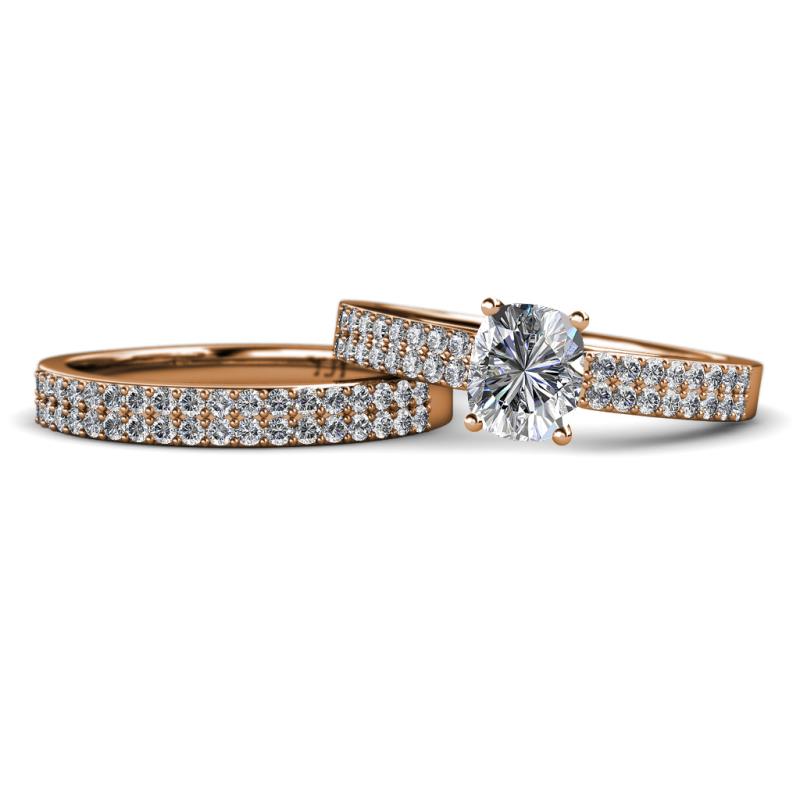 • Four Prong Semi Mount Engagement Ring & Wedding Band with side Diamond of 0.70 ct tw in 14K Rose Gold.