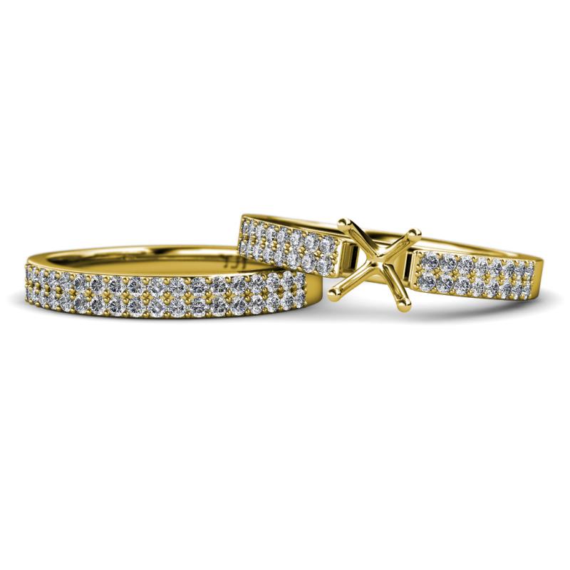 Promise to love her forever with this 0.70 ct tw Semi Mount Engagement Ring & Wedding Band which is enhanced by stunning shank featuring double row of Prong set Diamonds.