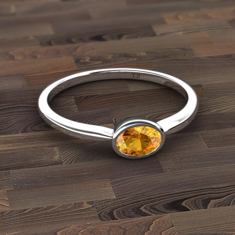 A fresh take on the classic solitaire ring, this contemporary ring has Oval cut Citrine horizontally set which makes it stunning.