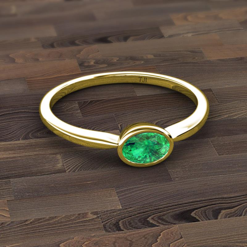 A fresh take on the classic solitaire ring, this contemporary ring has Oval cut Emerald horizontally set which makes it stunning.