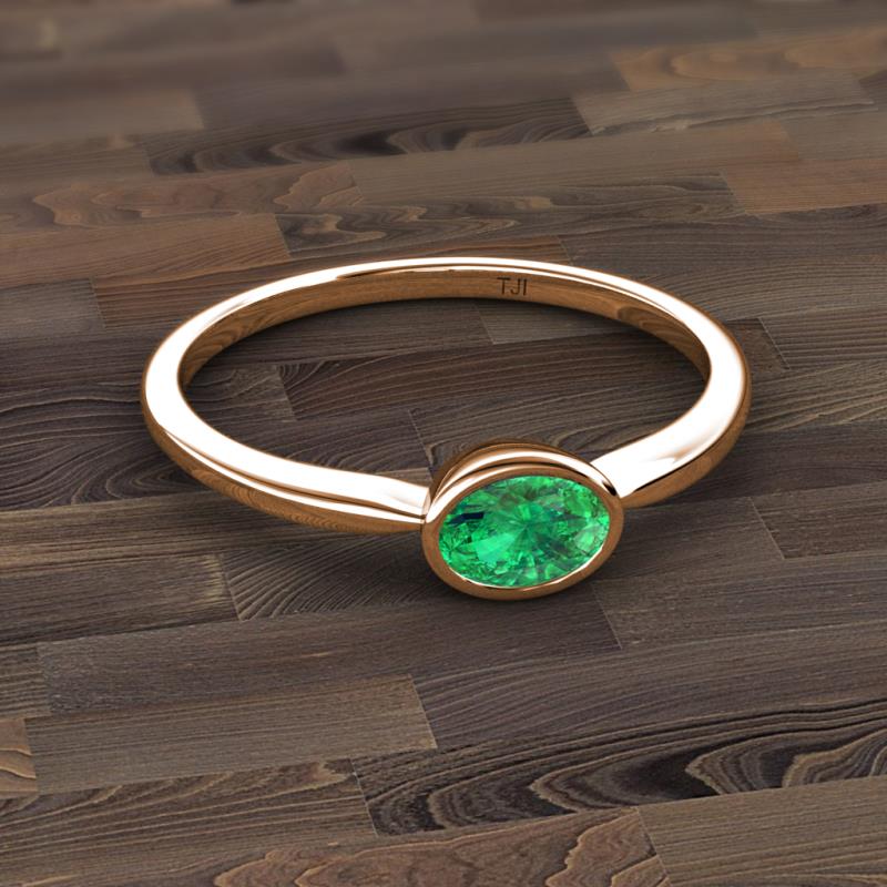 A fresh take on the classic solitaire ring, this contemporary ring has Oval cut Emerald horizontally set which makes it stunning.
