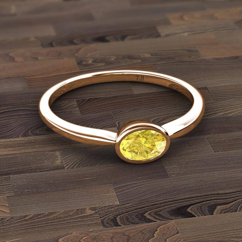 A fresh take on the classic solitaire ring, this contemporary ring has Oval cut Yellow Sapphire horizontally set which makes it stunning.