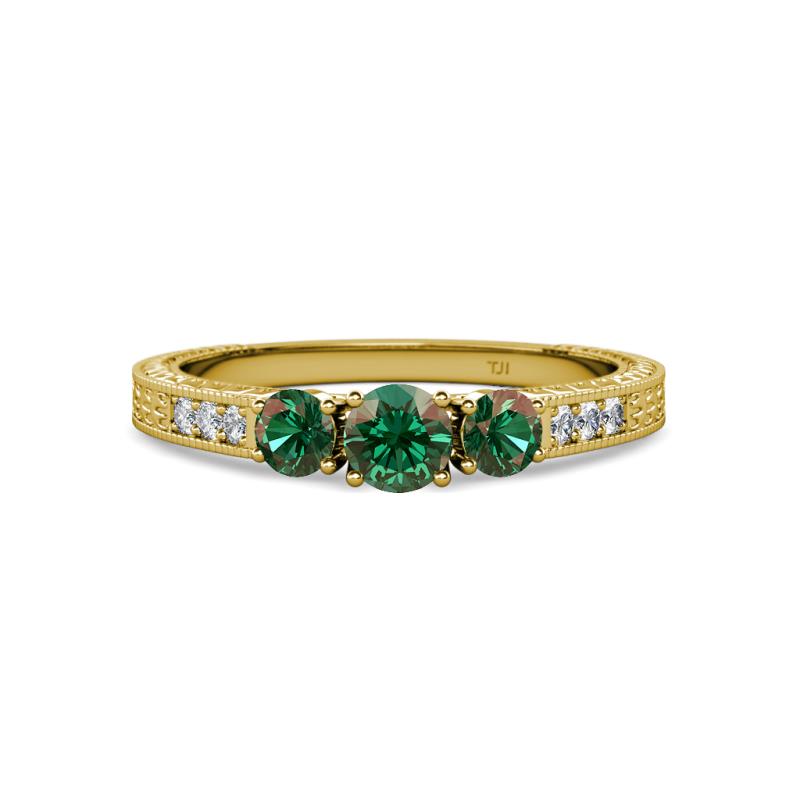 Round Lab Created Alexandrite Milgrain Womens Three Stone Engagement Ring with Diamond on Side Bar 7/8 ctw 14K Yellow Gold More Details ...