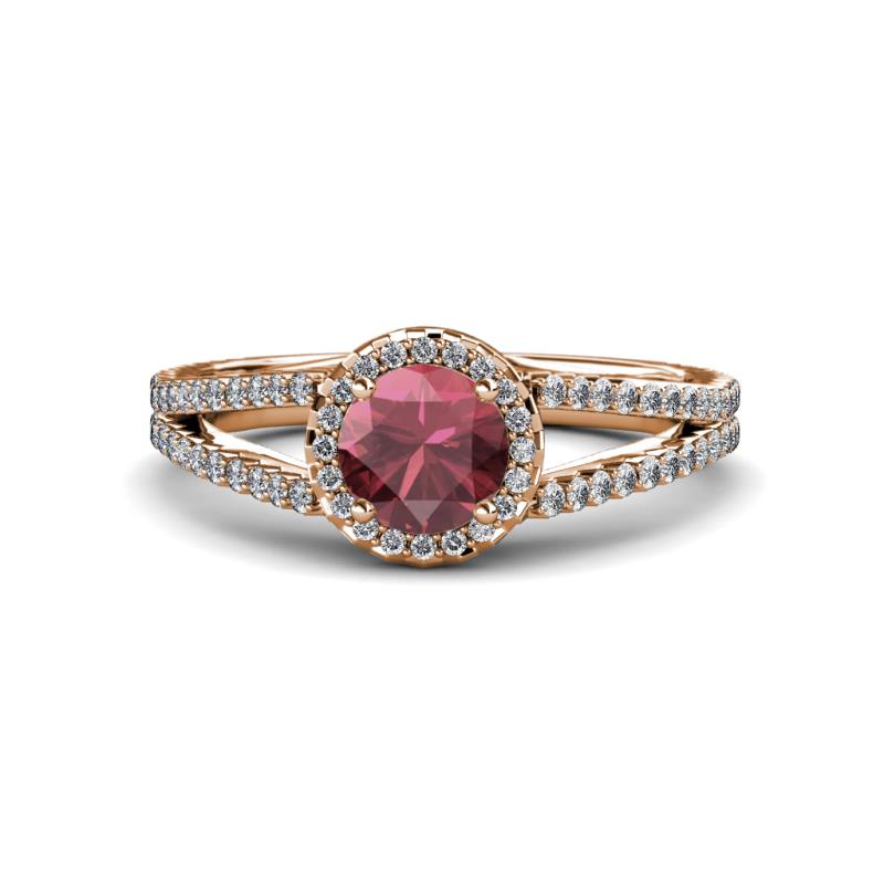 This Halo Engagement Ring is perfect to Celebrate one of the most unforgettable Moments of your life with Center Rhodolite Garnet embraced by Diamond which bears a distinct look which has a perfect balance of class and style.