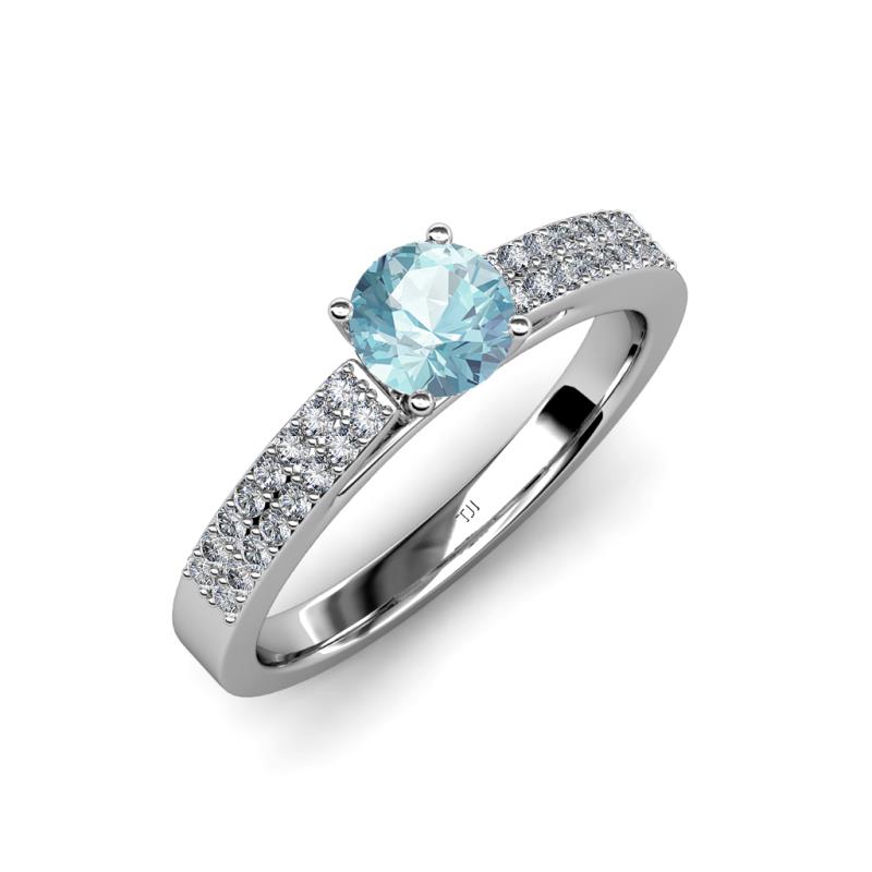 Aquamarine and Diamond Double Row Womens Engagement Ring 1.19 ctw 14K White Gold More Details ...