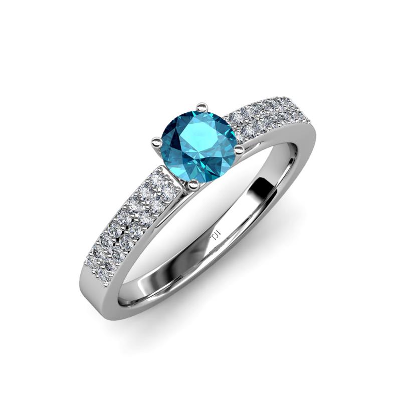 Your loved one will be completely swept off of her feet once she gaze this 1.37 ct tw Engagement Ring which is enhanced by a stunning Center London Blue Topaz,while the shank features a double row of diamonds set in Prong Set making the moment magical.