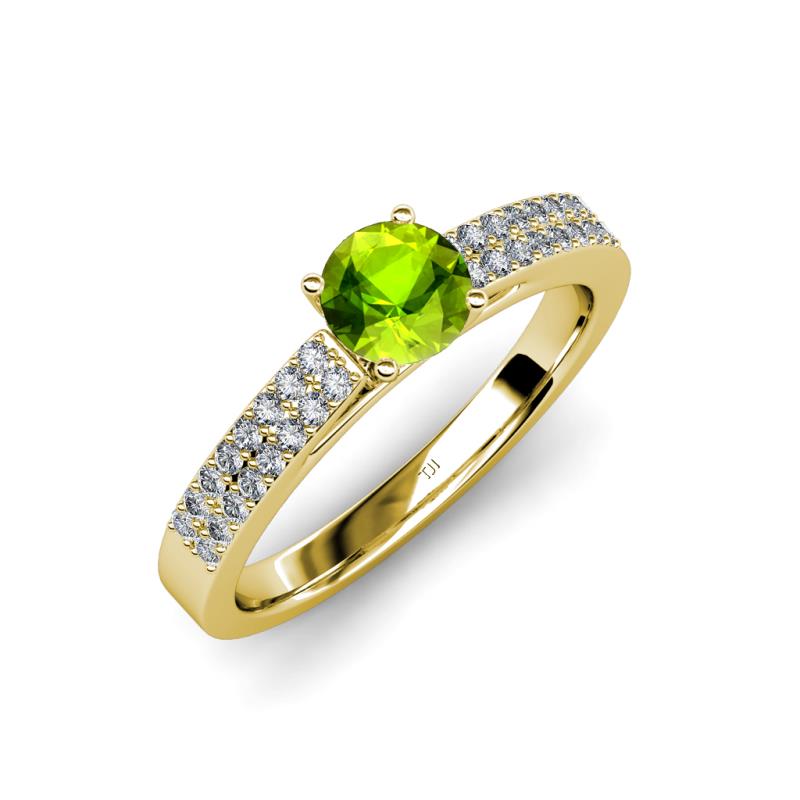 Peridot and Diamond Double Row Womens Engagement Ring 1.42 ctw 18K Yellow Gold More Details ...