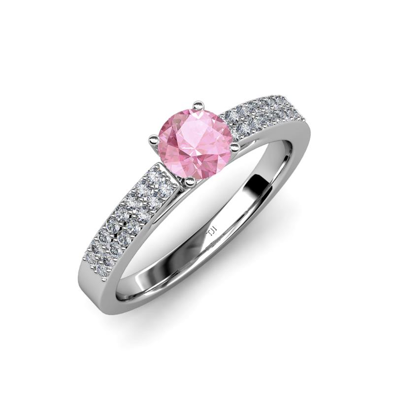 Your loved one will be completely swept off of her feet once she gaze this 1.19 ct tw Engagement Ring which is enhanced by a stunning Center Pink Tourmaline,while the shank features a double row of diamonds set in Prong Set making the moment magical.