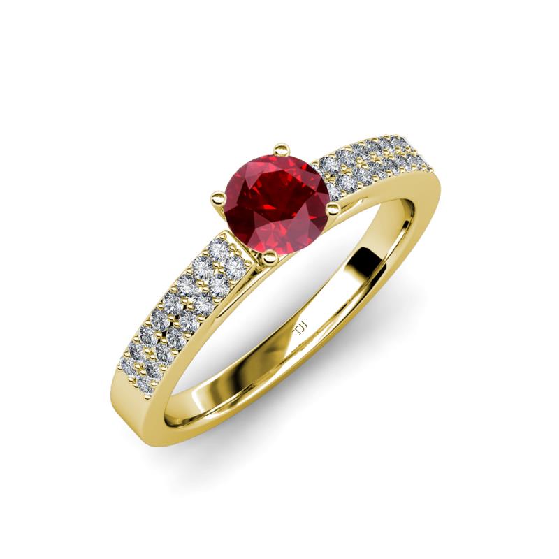Your loved one will be completely swept off of her feet once she gaze this 1.27 ct tw Engagement Ring which is enhanced by a stunning Center Ruby,while the shank features a double row of diamonds set in Prong Set making the moment magical.