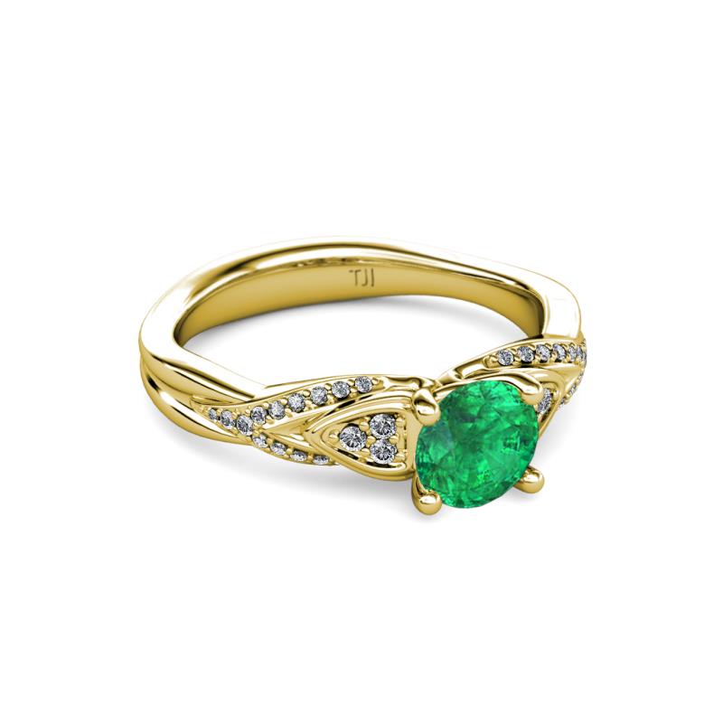 • 36 Round Diamond of 0.25 ctw/1.15 mm and 1 Round Emerald of 0.72 ctw/6 mm set using Pave & Prong Setting.