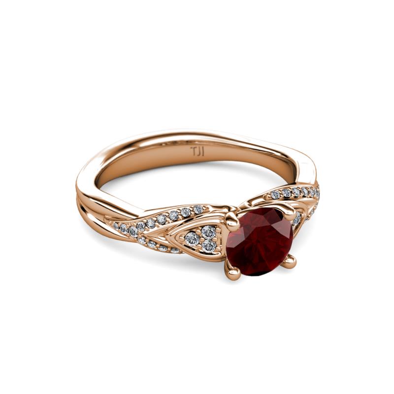 1 1/3 ctw Round Red Garnet and Diamond Womens Engagement Ring 18K Rose Gold More Details ...
