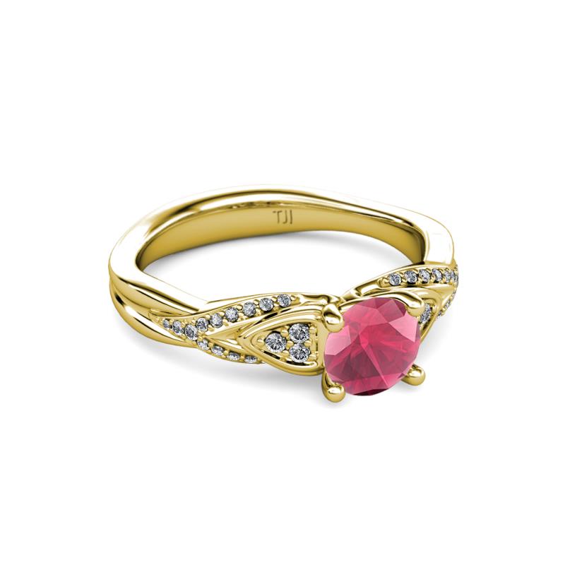 1 1/4 ctw Round Rhodolite Garnet and Diamond Womens Engagement Ring 18K Yellow Gold More Details ...