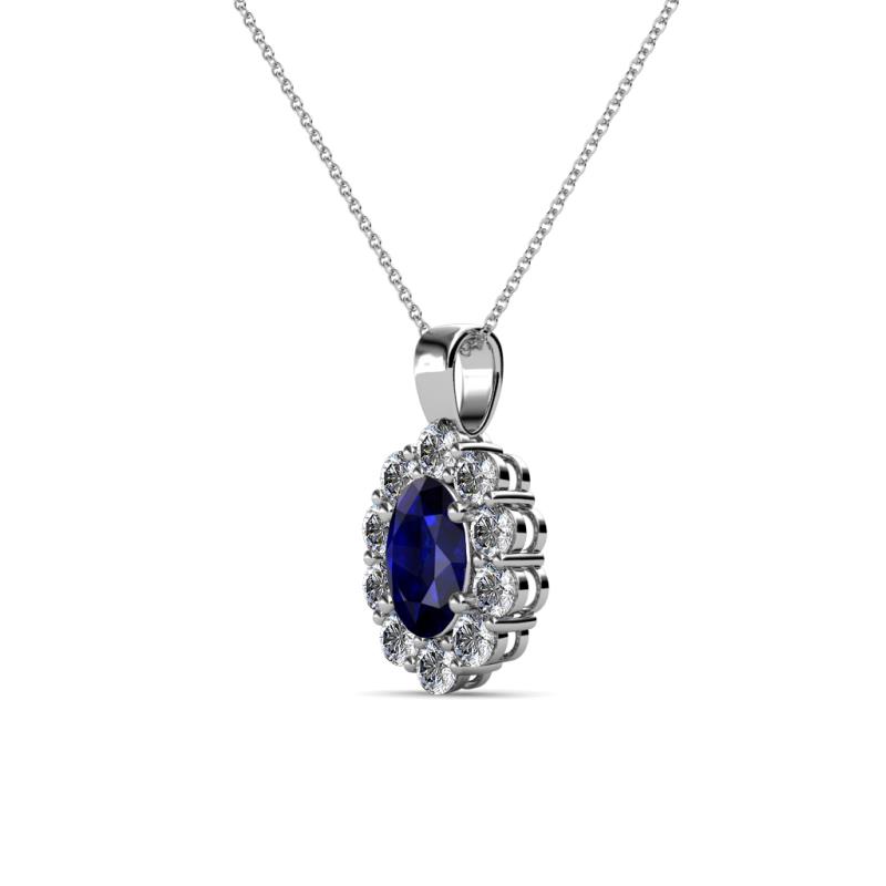 Oval Cut (6x4 mm) Blue Sapphire and Diamond Womens Halo Pendant Necklace 0.83 ctw 14K White Gold.Included 18 Inches 14K White Gold Chain More Details ...