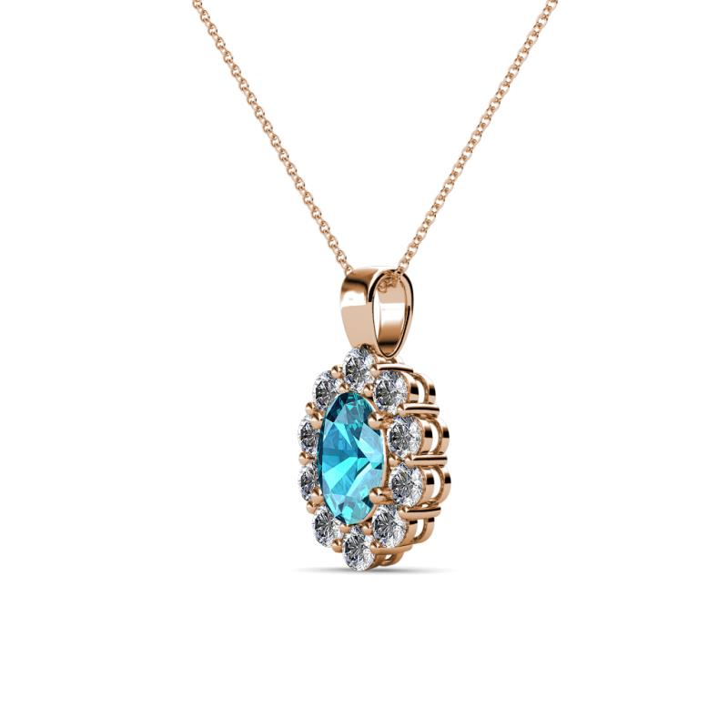 Oval Cut (6x4 mm) London Blue Topaz and Diamond Womens Halo Pendant Necklace 0.80 ctw 14K Rose Gold.Included 18 Inches 14K Rose Gold Chain More Details ...