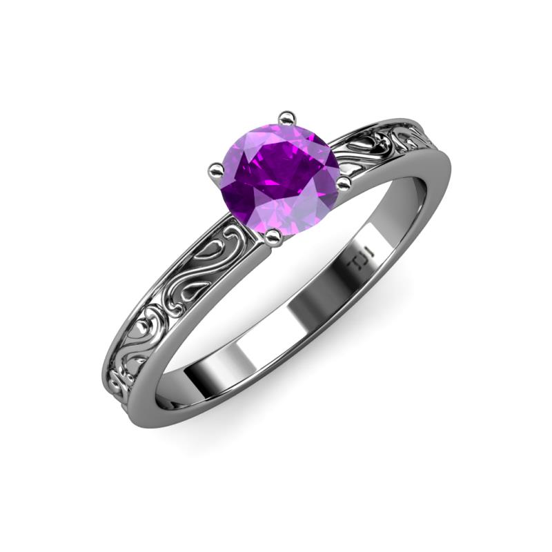 Round (6.50 mm) Amethyst 0.87 ct Scroll Women Solitaire Engagement Ring 14K White Gold More Details ...
